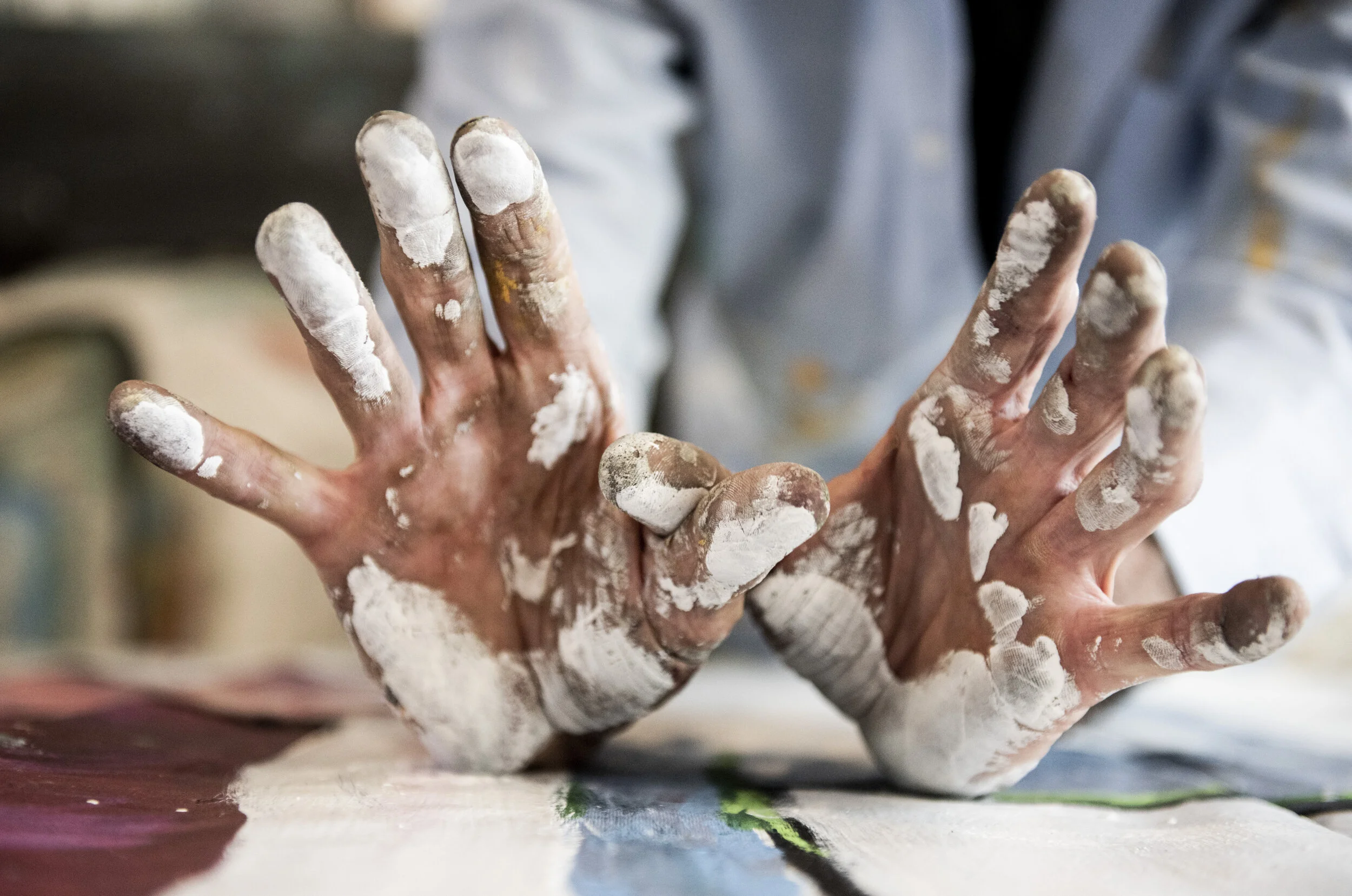 I love the smell of paint. I love its cool texture in my hands which are a tool more so than brushes.